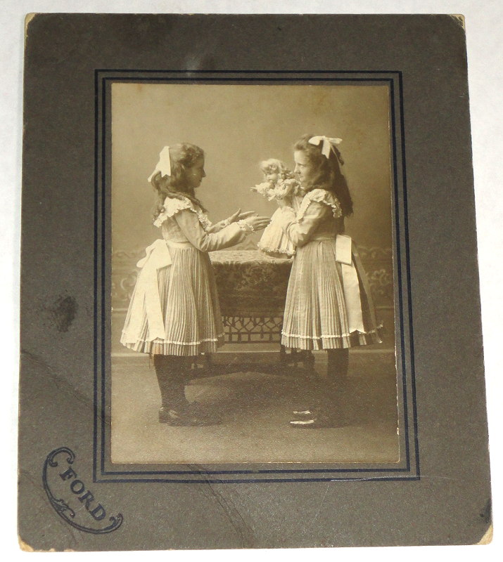 14523 Ford, photographer Aunt Veva and Aunt Ava Hamilton, Twins Ford, photographer 1910 Fair to good. One corner is creased. 3 x 4 inch sepia picture on a 4.5 x 5.5 mount of twins Veva and Ava Hamilton. Documentation on the back. (aaap) Photo $20