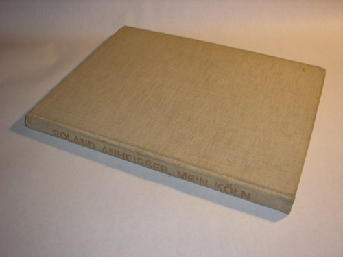 | 11660 | Anheisser, Roland | Mein Roln Bilder | Schwann | Good. There is light shelf wear and soiling on the covers and spine. The pages and endpapers are browning. The previous owner's writing at the bottom of the title page, a town name, 1927, and Adolf u Thea. No dust wrapper. | This 9.5 x 12 inch book has 184 pages and many illustrations. In German, it appears to be copy number 321. | Art, Architecture, Roland Anheisser | $25 |