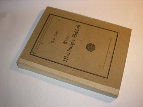 | 11669 | Justi, Karl | Das Marburger Schloss | Elwertsche Verlagsbuchhandl | Good. The slip-case has some spots on the front cover and light shelf wear and soiling all around. The lightly soiled spine has i/4 inch tears along both gutters, both top and bottom. Some of the plates have brown specks along the bottom edges. | 52 9.5 x 12.5 inch b&w plates of the Marburger Castle and it's history. | Architecture, Marburger, Germany | $50 |