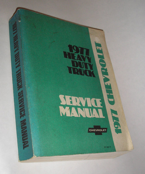 | 10633 | Chevrolet | Service Manual 1977 Chevrolet Heavy Truck Series 70 Thru 9502 | General Motors | Good. Shelfwear and light soiling on both covers. The back cover has a short crease. | 1977 8.5 X 11 inch thick paperback with lots of illustrations. | Automotive, Truck, Cheverolet | $25 |