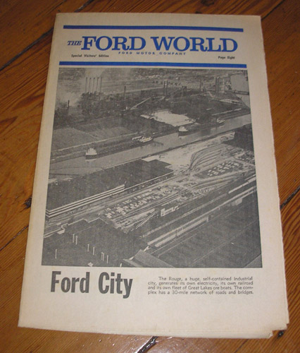 | 11779 | Ford Motor Company | The Ford World Special Visitors' Edition 1967 | Ford Motor Company | Good. Light shelf wear, paper browning. | 8.5 x 11 inch newspaper, unfolds three times to a final dimension of 23 x 15.5 inches. | Automotive, Ford Motor Company, Ephemera | $20 |