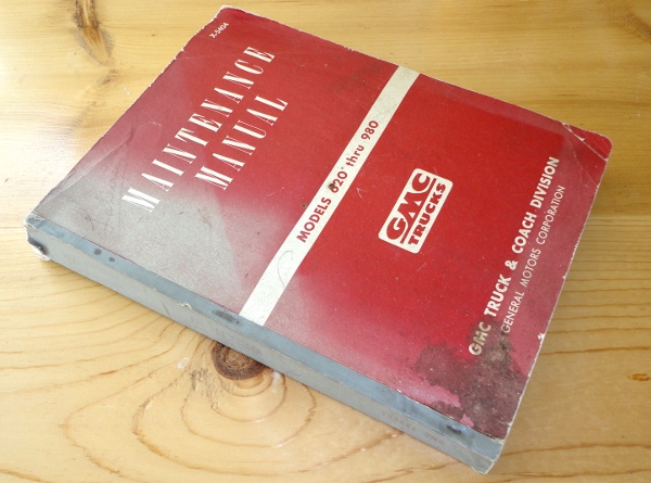 | 12187 | GMC Truck & Coach Division | Maintenance Manual GMC Trucks Gasoline and Diesel Models 620-980 | General Motors Corporation | Fair. The front cover has creasing, stains and fading. The contents are good with light shelf wear. | 8x10.75 inches with many photos, diagrams and drawings. There are 19 sections. | Automotive, GMC, GMC 620, GMC 980, Truck | $25 |