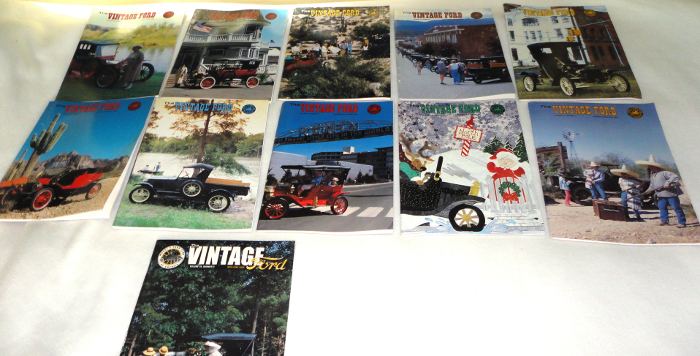 | 12945 | Klehfoth, Jay, Editor | The Vintage Ford, 11 issues | The Model T Ford Club Of America | Very good. One issue has a sharp crease on the front. | 8.25 x 11 inches with many interesting articles on Model T Fords. There are numerous b&w and color photos. Vol. 33 no. 2, 3,4,5,6, Vol. 34 no. 1,4,5,6, Vol. 35 no. 1 and 3. | Model T Ford, Automotive | $50 |