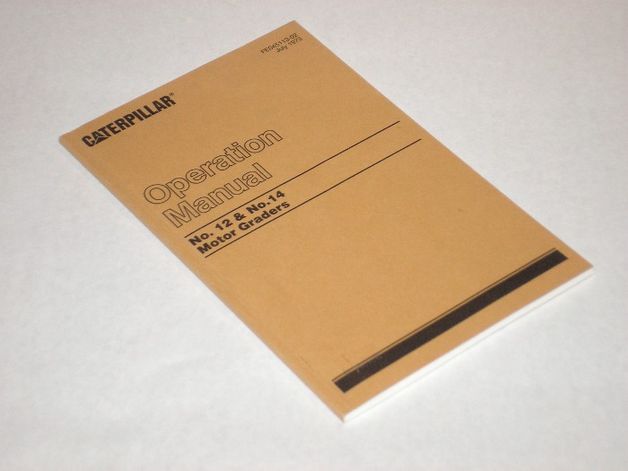 | 13122 | Caterpillar | Caterpillar Operation Manual no. 12 & No. 14 Motor Graders | Caterpillar | Very good. | 5.25 x 8.25 inches, an operation manual for a Caterpillar grader with many b&w photos and illustrations. | Earth moving, automotive, Caterpillar, Grader | $25 |