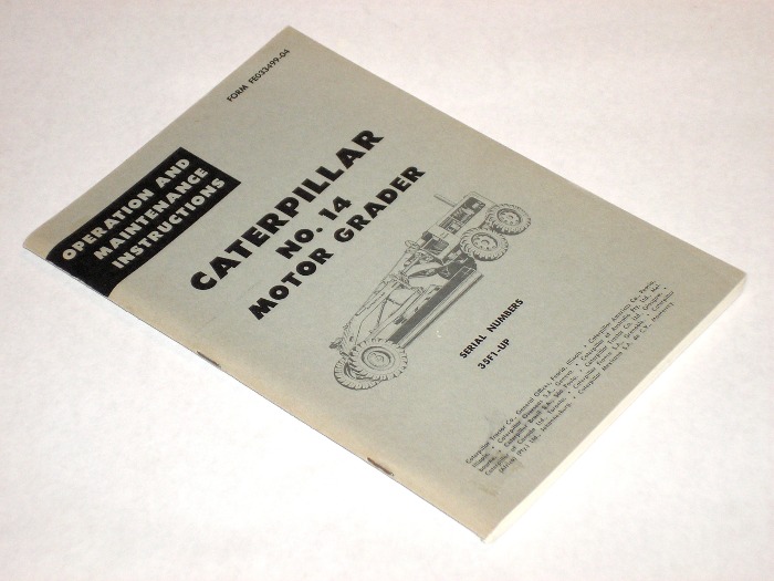 | 13123 | Caterpillar | Operation And Maintenance Instructions Cater pillar No. 14 Motor Grader | Caterpillar | Very good. | 6 x 9 inches, Caterpillar No. 14 Motor Grader instructions with many b&w photos, illustrations and an index. | Earth moving, automotive, Caterpillar, Grader | $30 |