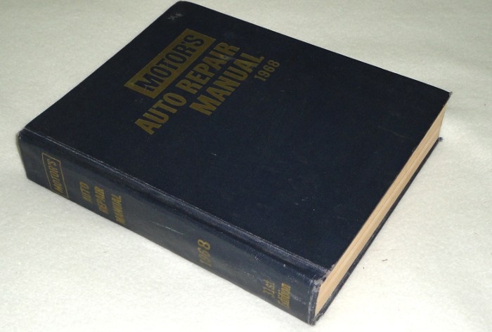 | 13266 | Ritchen, Ralph | Motor's Auto Repair Manual 31st Edition | Motor | Good. Covers have some wear and soiling. Spine has faint creases. Covers lightly bowed. Contents has occasional light soiling. | Motor's Auto Repair Manual for 1968. | Automotive | $25 |