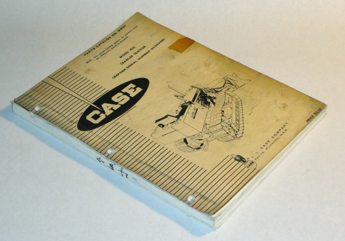 | 13449 | J. I. Case | Case Model 45 Crawler Tractor Parts Catalog | J. I. Case | Good. Both covers have some soiling. The front cover has a piece of masking tape. | 8.5 x 11 inches, parts catalog no. 8930, with many b&w illustrations. Before serial number 3038436. Three ring punched, no binder present. | J. I. Case, Case Model 450, Automotive. | $40 |