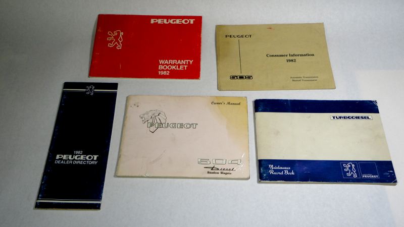 | 14097 | Peugeot | Peugeot 504 Diesel Station Wagon Owner's Manual | Peugeot | Fair to good. Covers are both worn and soiled. Contents have some soiling and crinkling. | Peugeot Owner's Manual for a 1981-2? 504 Diesel Station Wagon. Also included isa 1982 Peugeot dealer Directory, a 1982 warranty booklet, the Turbodiesel Maintenancee Record Book in a used condition and a separate sheet on tire reserve loads for automatic and manual transmissions for the 505 | Automotive, Peugeot diesel | $25 |