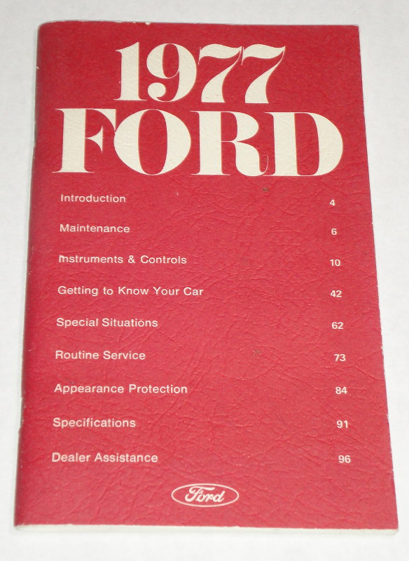 | 14363 | Ford Motor Company | 1977 Ford Owner's Guide | Ford Motor Company | Very good. | Owner's manual for 1977 Ford cars. There are many illustrations and an index. | Automotive, Ford | $20 |