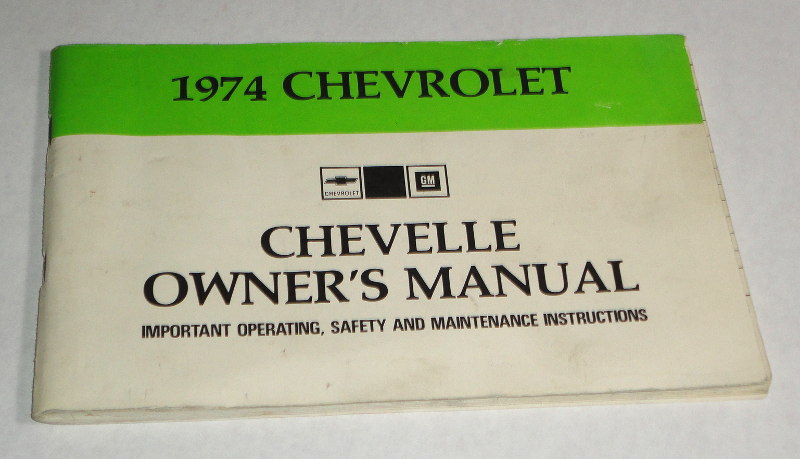| 14522 | General Motors | 1974 Chevrolet Chevelle Owner's Manual | General Motors | Good. Some light soiling and shelf wear | 8.25 x 5.25, an original (not a reprint) owner's manual for 1974 Chevelles. | Automotive, Chevelle | $20 |
