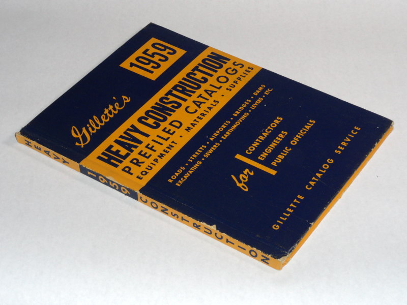 | 14930 | Gillette, W. E., President | Gillette's Heavy Construction Prefiled Catalogs 1959 | Gillette Catalog Service | Good. Spine has some scraping on the side and wear on the top. No dust wrapper. | 8.5 x 11 inches, many b&w illustrations of commercial, heavy construction equipment. | Heavy construction, automotive | $75 |