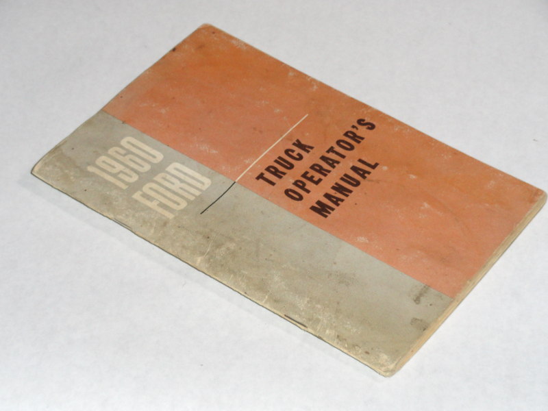 | 13979 | Ford Motor Company | 1960 Ford Truck Operator's Manual | Ford Motor Company | Good. Both covers have some wear, soiling and staining. The back cover has ink numbers. Contents are very good. | An original owner's manual for 1960 Ford trucks with many b&w illustrations, charts, tables and an index. | Automotive, Ford Motor Company | $20 |