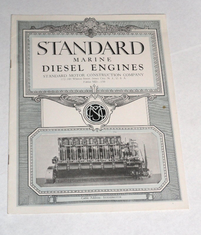 | 15406 | Standard Motor Construction Company | Standard marine Diesel Engines | Standard Motor Construction Company | Good. One spot on the front cover. | 8.5 x 11 inches, a catalog of available Standard Marine Diesel Engines. There are several b&w photos. The U.S. Long Distance Automobile Co. and the Hewitt Motor Co. were involved. | Standard Motor Co., The United States Long Distance Automobile Co, Hewitt Motor Co., automotive. | $40 |