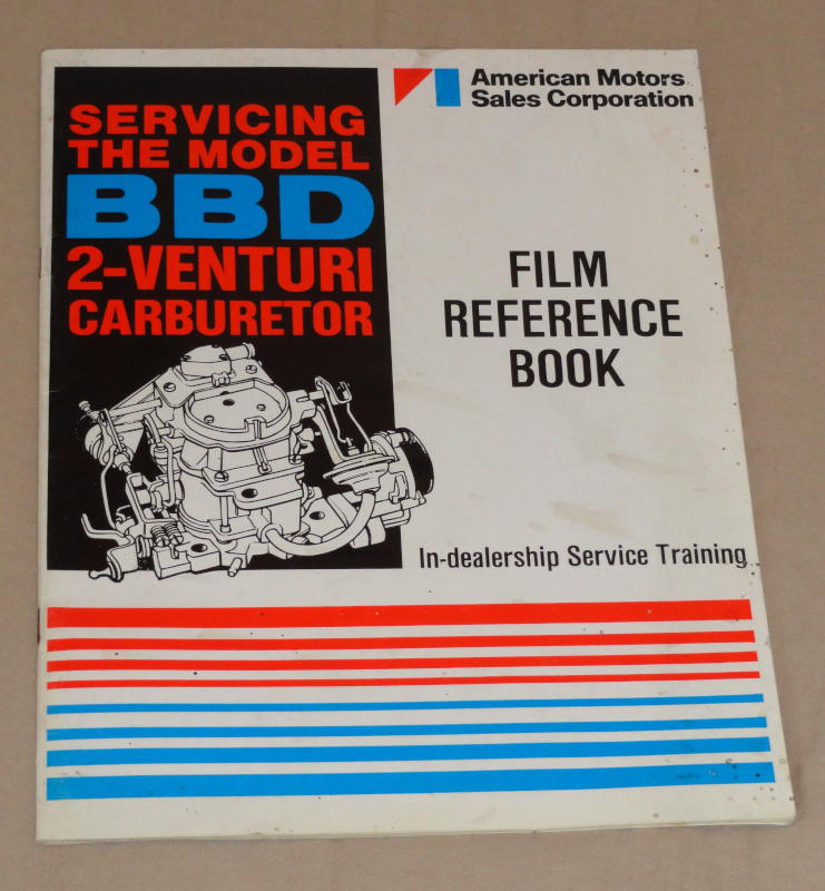| 15806 | American Motors | Servicing The Model BBD 2-Venturi Carburetor | American Motors | Good. Soiling on the covers. Faintly musty. | 8.5 x 11 inches, servicing the model BBD Carburetor. There are b&w photos and illustrations. | Automotive, American Motors, BBD Carburetor | $20 |