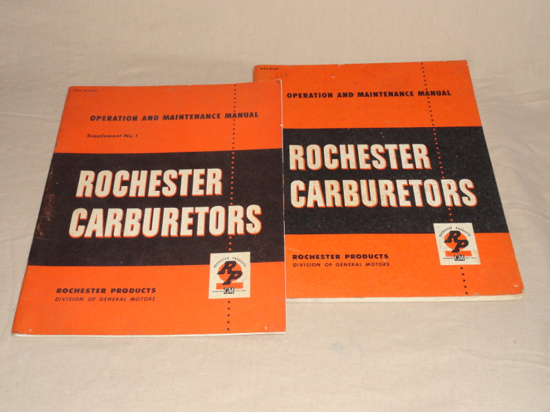| 15891 | General Motors | Operation And Maintenance Manual Rochester Carburetors - with Supplement No. 1 | Rochester Products | Good. Slightly soiled and worn. Rusty staples. | 8.5 x 11 inches with many photos and illustrations. The supplement has 26 pages and is from 1952. | Automotive, Rochester Products | $20 |