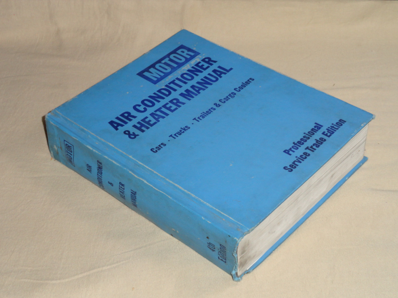 | 16048 | Forier, Louis C., editor | Motor Air Conditioner & Heater Manual 4th edition | Motor | Good. Bumps and scrapes on the covers and spine. Soiling. Owner's name on top of pages and inside. | 8.5 x 11 inches with pictures, illustrations, diagrams, schematics, parts & time section - air conditioning systems in the 1970s and before | Automotive, air conditioning | $100 |