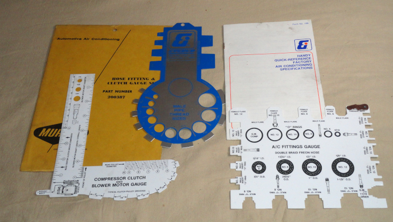 | 16095 | Murray Automotive Air Conditioning | Hose Fitting & Clutch Gauge Set Part Number 200387 | Murray Automotive Air Conditioning | Good. Rusty staples and soiling on the booklet. | Hose Fitting & Clutch Gauge Set Part Number 200387. Includes instructions , 2 plastic gauges and one metal. | Murray Automotive Air Conditioning, automotive | $30 |
