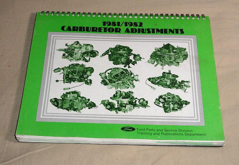 | 16096 | Ford | 1981/1982 Carburetor Adjustments | Ford | Good. Light shelf wear. | 11 x 8.75 inches, spiral bound, 1981/1982 Carburetor Adjustments by Ford parts and service Division. There are many illustrations. | Automotive, Ford, Carburetor | $40 |