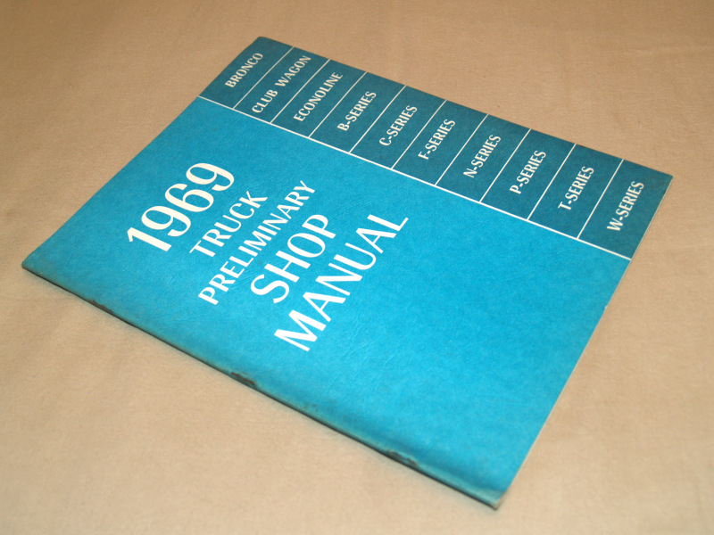 | 16203 | Ford Motor Company | 1969 Truck Preliminary Shop Manual | Ford Motor Company | Good. Rusty staples | 8.5 x 11 inches, a preliminary shop manual for 1968. Not a complete shop manual. Refers to the 1968 manuals. | Automotive, Ford Motor Company | $35 |