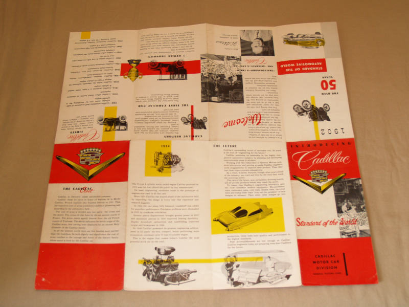 | 16230 | Cadillac Motor Car Division General Motors Corp. | Introducing Cadillac Standard of the World | Cadillac Motor Car Division General Motors Corp. | Good. Light shelfwear. Two small holes at creases. | 19 x 18 inches, a multi-fold brochure on Cadillac Cars in 1952 | Automotive, Cadillac, ephemera | $20 |