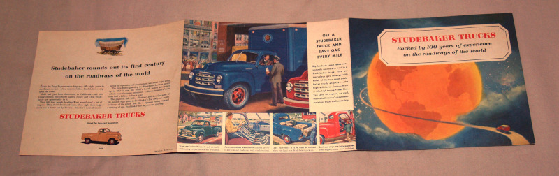 | 16585 | Studebaker | Studebaker Trucks Backed by 100 years of experience on the roadways of the world | Studebaker | Very good. | 7.25 x 26.75 inches, 2 fold brochure for 1952 Studebaker trucks. | Automotive, Studebaker, Car literature | $25 |