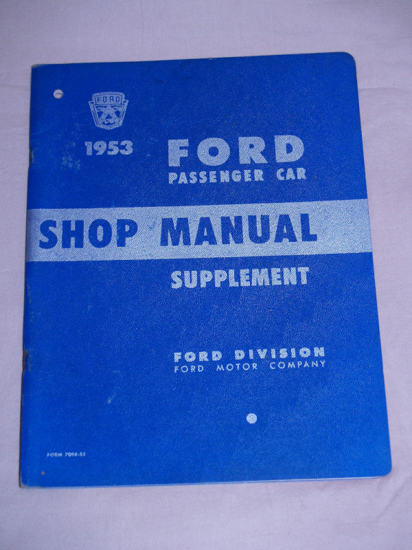 | 16624 | Ford Division Ford Motor Company | 1954 Ford Passenger Car Shop Manual Supplement | Ford Motor Company | Good. Some soiling, shelf wear and creasing. | 8.5 x 11 inches with many b&w photos and illustrations. | Automotive, Ford, Shop Manual | $25 |
