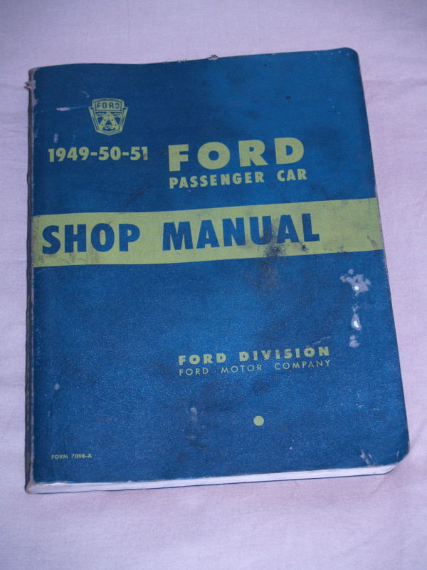 | 16627 | Ford Division Ford Motor Company | 1949-50-51 Ford Passenger Car Shop Manual | Ford Motor Company | Fair to good. Covers and spine have wear & soiling. Front cover has two small holes. | 8.5 x 11 inches with many b&w photos and illustrations. | Automotive, Ford, Shop Manual | $25 |