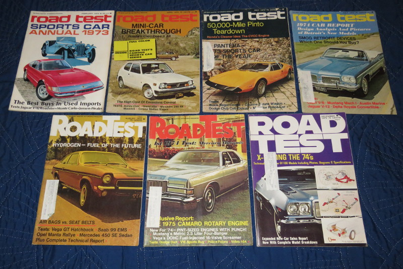 | 17179 | Road Test Staff | Road Test, 7 volumes: 1973, February, April, May, July, August, September and December | Road Test Magazine | Good. Staples are a little rusty. Faintly musty. | 8 x 11 inches with b&w photos, automotive tests. | Automotive, Road Test | $30 |