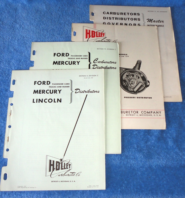 | 17325 | Holley Carburetor Company | Carburetors Distributors Governors Heat Regulators Master Interchange plue 2 other manuals | Holley Carburetor Co., | Good. Rusty staples. Light shelf wear. | Also includes Ford, Mercury and Lincoln distributors and the service manual for distributor models 1201, 1209, 1214, 1215 and 1219. Pictures and illustrations. | Automotive, Holley Carburetor Company | $40 |