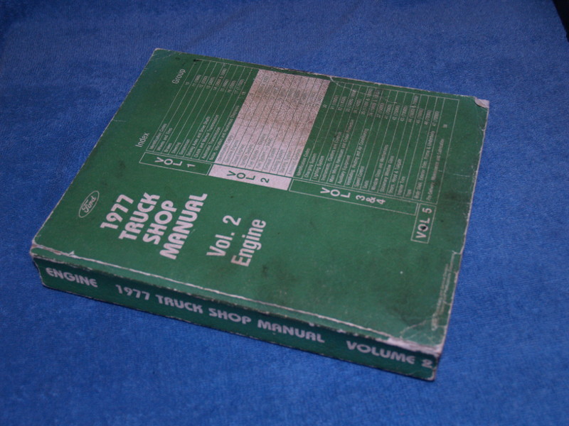 | 17359 | Ford | 1977 Truck Shop Manual Vol. 2 Engine | Ford | Fair. Fair to good with grease and water stained covers. | There are many b&w photo illustrations. | Automotive, Ford Motor Company, Shop manual | $30 |