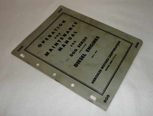 | 4231 | Hercules Motors Corporation | Operation and Maintenance Manual for DOO Series Four Cylinder Diesel Engines | Hercules Motors Corporation 1957 stiff paper with 86 pages and many photos. 8.5 X 11 inches, 3 ring punched. | Fair. with stained covers, folded cover edges, water dammage bottom inside of the pages. | Operation and Maintenance Manual for DOO Series Four Cylinder Diesel Engines | Automotive, Hercules, Diesel, automotive | $20 |