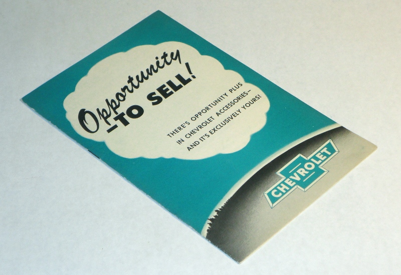 | 9044 | General Motors | Opportunity - To Sell! There's Opportunity Plus In Chevrolet Accessories-And It's Exclusively Yours! | General Motors Chevrolet Circa 1949 5.5 X 8.5 inch 10 page brochure with photos. | Fine. | Automotive, Chevrolet | Automotive, General Motors, Chevrolet , literature, ephemera | $20 |