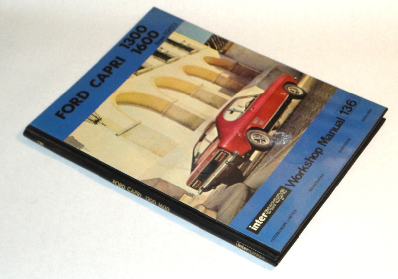 | 9712 | Russek, Peter R. D. | Ford Capri 1300 and 1600 C.C. | Intereurope 1971 2nd edition, 8 x 10.5 inches, with 106 pages, many photos and illustrations. | Good. Some pen notations back in the wiring diagram section. Hard Plastic covers. | Ford Capri 1300 and 1600 from 1969, automotive. Workshop manual 136 | Shop manual, Ford Capri 1300, Ford Capri 1600, automotive | $20 |