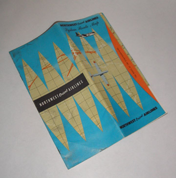 | 10343 | Anon | Northwest Orient Airlines System Route Map | Northwest Orient Airlines | Good. Some shelf wear, light soiling and creasing. | Circa 1950's folded 8 x 9 stapled paper brochure with 22pages of maps and a milage chart. Stratocruiser silhouettes on the front cover. | Aviation, Northwest Oriet Airlines, Boeing Stratocruiser | $25 |