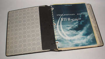 | 10460 | Wright Aeronautical Division Curtis-Wright Corporation | Preliminary Data WTF-10 Turbofan | Wright Aeronautical Division. | Good. Penciling on the pages, a few short tears on the pages. | Circa 1956 3 ring binder with approximately 100 one-sided pages, an 11 x 40 inch fold-out cross section of the WTF-10 engine, b&w photos of engine parts and many graphs. A proposal for turbofan engines that didn't reach production? | Aviation, Jet engine, turbo-fan, Westinghouse | $150 |