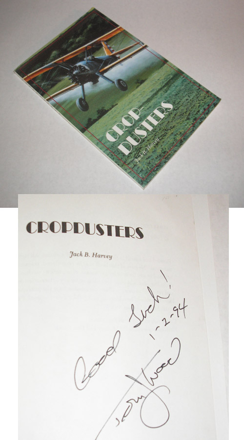 | 11143 | Harvey, Jack B. | Cropdusters | Ag-Pilot International Magazine | Very good with light shelf wear and soiling. The front cover has a light vertical crease. | 1993 paperback, possibly inscribed by the author, with 97 pages. Poetry | Poetry, Aviation, cropdusting, agriculture. | $30 |