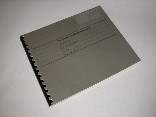 | 11715 | Boeing | The Canadian Long Range Patrol Aircraft Oral Presentation by The Boeing Company Ottawa March 12, 1975 | Boeing | Good. A speck on the front cover, light soiling on both. | This 10 x 8.5, spiral bound paperback, has pictures of Boeing products. There are charts and graphs for the Long Range Patrol Aircraft proposal. | Boeing, Aviation, Canada | $20 |