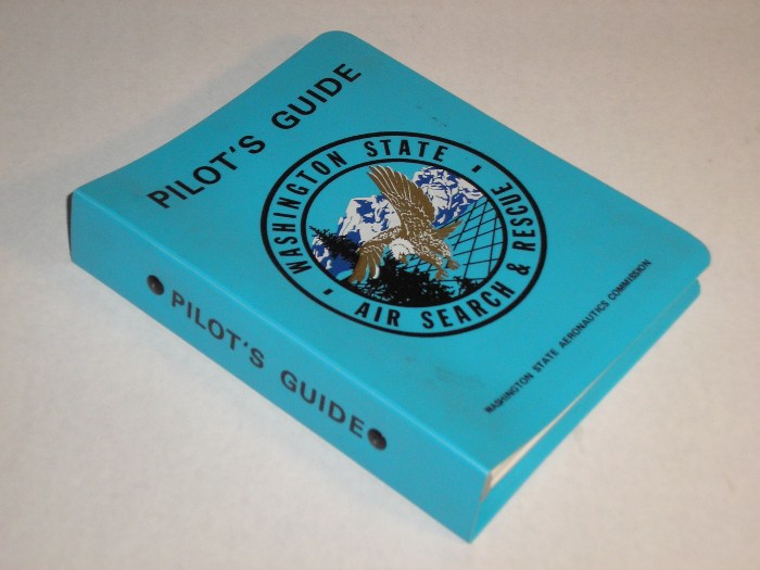 | 12547 | Washington Division of Aeronautics | State of Washington Washington Pilots Guide | Washington Division of Aeronautics | Very good. Light soiling on the covers. | 5 x 7 inches, plastic covers, pictures and maps of Washington State Airports and fields in 1977. | Aviation, Washington State, Pacific Northwest. | $20 |