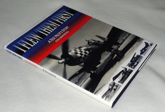 | 13264 | Armstrong, Don | I Flew Them First | Champlin Fighter Museum Press | Very good. In a very good dust wrapper. | 8.5 x 11 inches with many b&w photos and two appendices. Inscribed by the author to another pilot. The author worked as a test pilot for several companies including Bell, Curtis and Goodyear, especially on the Goodyear FG | Aviation, Test Pilot, Goodyear FG | $75 |