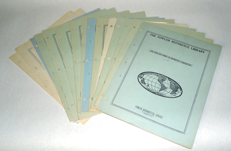 | 13521 | Fowler Aeronautical Service | The Fowler Study Kit | Fowler Aeronautical Service | Good. | 8.5 x 11 inches, there are several units of study including Private Pilot, Commercial and instrument ratings, instrument flying, engine operation and power control and 14 others. Loose-leaf. | Aviation, Fowler Reference Library | $40 |