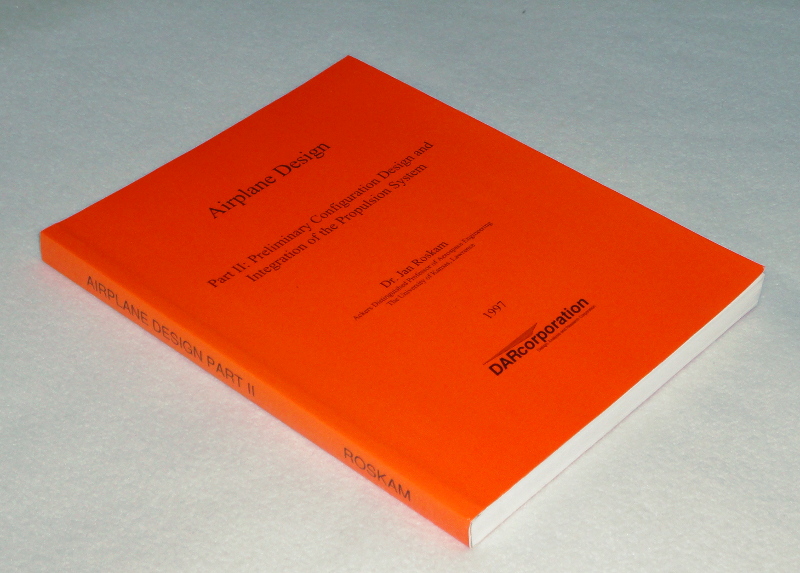| 13794 | Roskam, Dr. Jan | Airplane Design Part II: Preliminary Configuration Design and Integration of the Propulsion system | DARcorporation | Very good. | 8.5 x 11 inches with many diagrams, tables, drawings and an index on Airplane design. | Aviation, airplane design | $50 |
