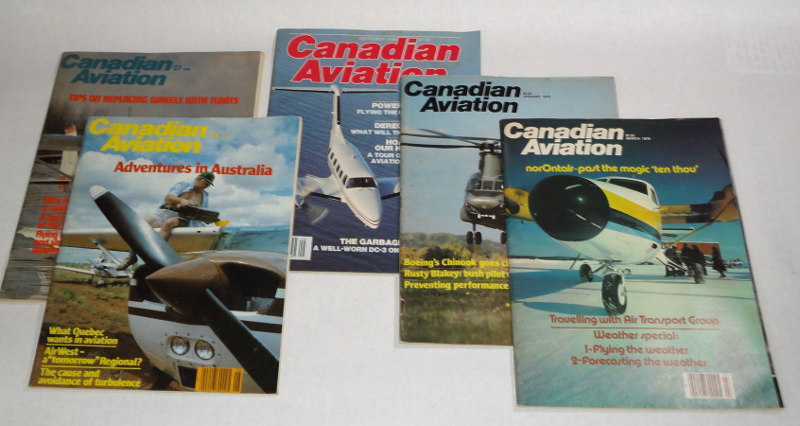| 14455 | Whittington, Hugh | Canadian Aviation Five Issues 1979-1985 | Maclean Hunter Ltd. | Good. Light shelf wear. | January, March, May and June of 1979, and September of 1985 | Canada, Aviation | $20 |