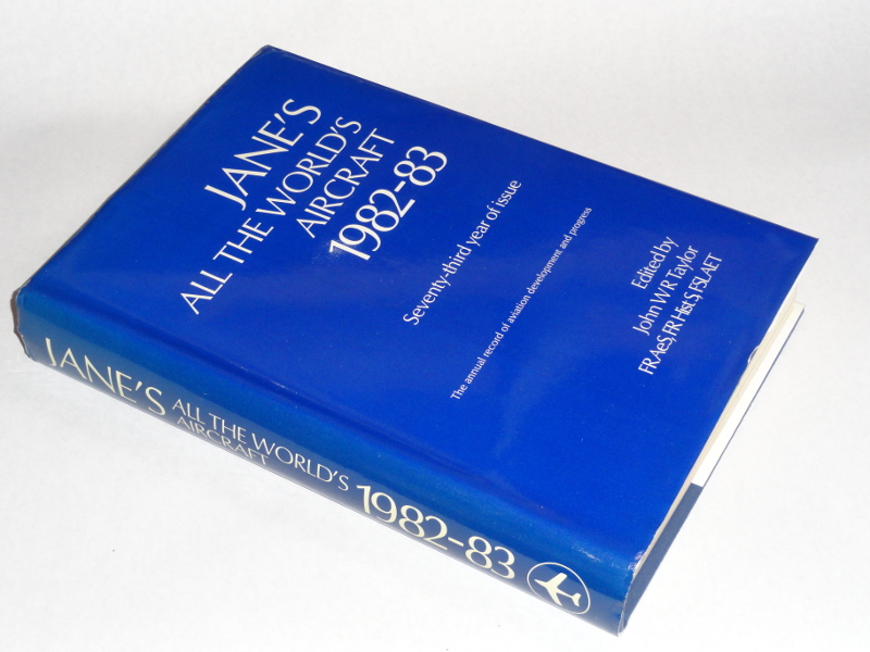 | 15726 | Taylor, John WR, Editor | Jane's All The World's Aircraft 1982-83 | Jane's | Fine. In a good dust wrapper. | 8 x 13 inches with many ads, data and pictures of the world's airplanes, and an index. Includes a book mark from Flight Refuelling Limited. | Aviation | $30 |