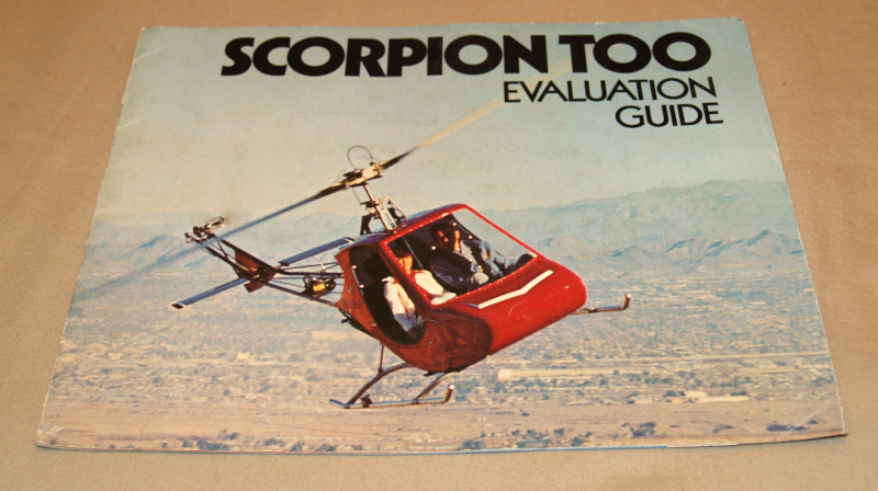 | 16199 | RotorWay | Scorpion Too Evaluation Guide | RotorWay | Good. Some soiling, creasing and one short tear. | 11 x 8.5 inches, evaluation guide with color photos. | Aviation, Helicopter, Rotorway | $20 |