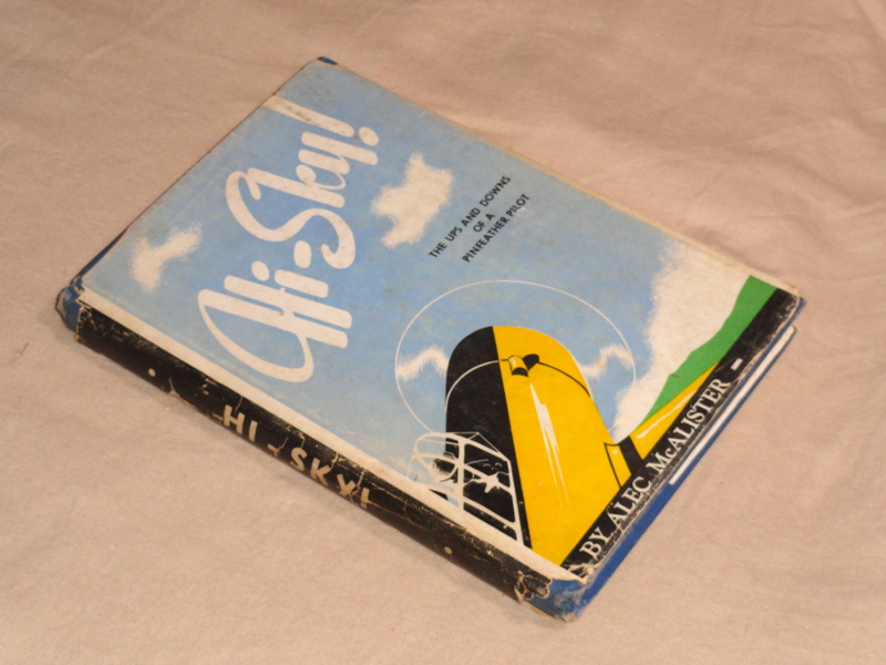 | 4075 | McAlister, Alec | Hi - Sky! The Ups and Downs of a Pinfeather Pilot | The Ryerson Press. | Good. Soiling and shelfwear, top and bottom of the spine have wear. Owner's name and inscription on the front free endpaper. In a poor dust wrapper. A bit musty. | WW2 pilot training in the RCAF. Drawings by Sergeant E. Andoniadis | WW2, RCAF, Aviation | $17 |