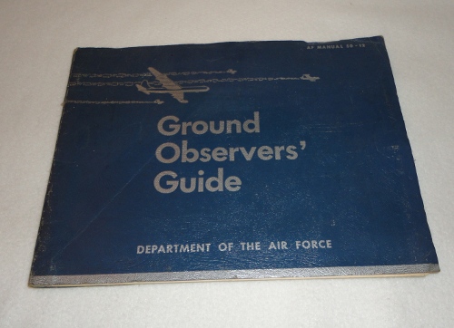 | 4200 | Department of the Air Force | Ground Observer's Guide AF Manual 50 - 12 | Department of the Air Force 1951 slender soft cover with many b&w photos of planes. 11 X 8 inches | Good, with shelf wear and soiling | Air Force manual 50-12 | Aviation, ground observation. | $15 |