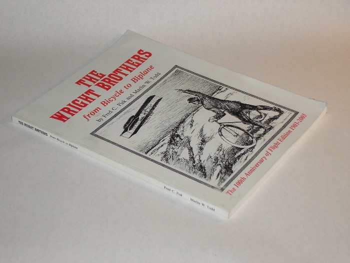 | 8868 | Fisk, Fred C. and Marlin W. Todd | The Wright Brothers From Bicycle To Biplane | Self Published 1995 8.5 X 11 paperback, signed by Fisk, with 128 pages and many b&w photos. | Very good. Remains of a price sticket on the back cover. | Autobiography, biography of the Wright brothers. Aviation | Aviation, Wright Brothers | $15 |