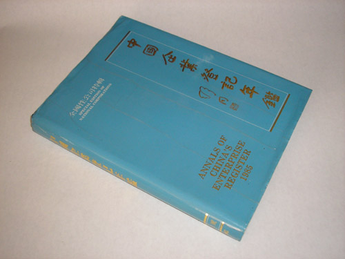 | 11433 | Yanshou, Li and Tian Shuqian, editors | Annals of China's Enterprise Register 1985 | China's Enterprises Register | Very good in a good, lightly worn dust wrapper. The dust wrappers has manufacturing wrinkles in the covering plastic. | This 7 x 10 inch hardback has 527 pages with many color illustrations, of Chinese Companies and industry in general | China, Industry | $30 |