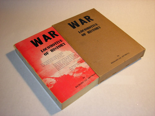 | 11604 | Deverall, Richard L-g. | War Locomotive of History | Self-published in Japan | Good with light shelf wear and soiling. There's a short tear and some light creasing on the front cover. The first few pages have vertical creases. The owner's bookplate is in front. The cardboard slip-case is in good condition. | The Communist view of war as a "Locomotive" of history. There are many pictures, notes and an index. | China, Communism, history, politics | $25 |
