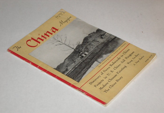 | 12586 | Anon | The China Magazine Vol. XVIII No. 8 August, 1948 | Chinese News Service | Fair to good. The covers have some light soiling and creasing. The front cover has a staple. Interior page edges have some creasing. | China in 1948. 5.5 x 7.75 inches with b&w photos and illustrations. | China, Taiwan. | $20 |